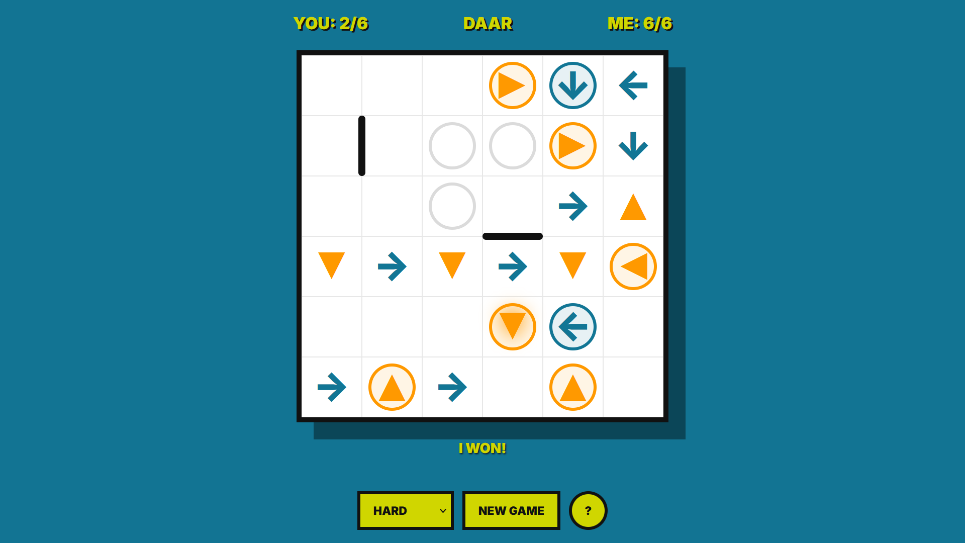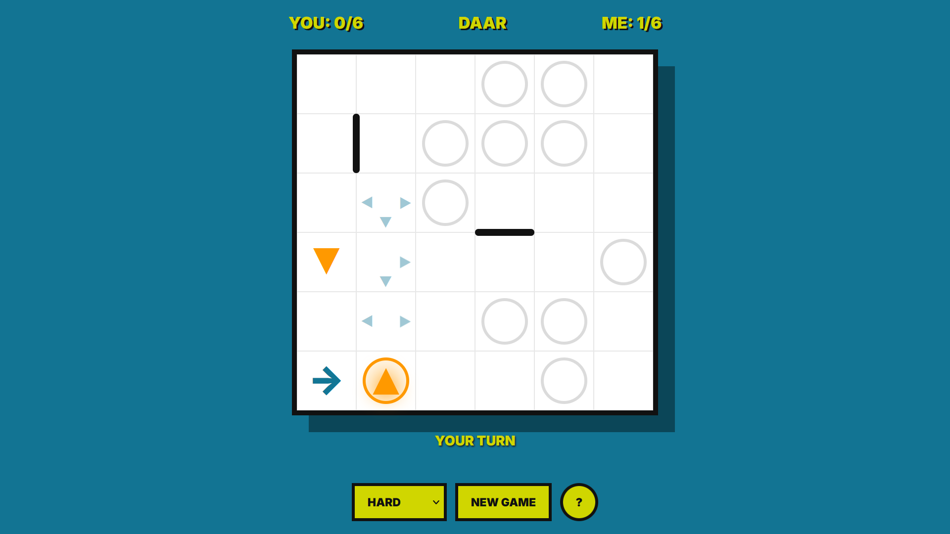 This is one of my old pen-and-paper games that I previously published in a different form in a magazine, and it remains one of my favorites. You can challenge the AI in this version, but if you like it, you can also play it with friends instead of the classic Tic-tac-toe (though does anyone still play Tic-tac-toe?).